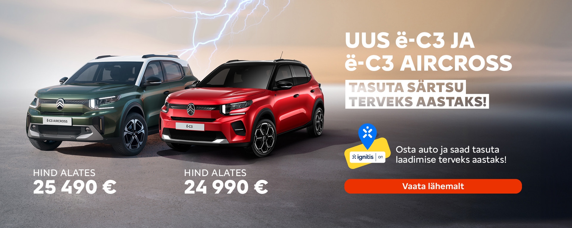 Ostes uue Citroën ë-C3 või ë-C3 Aircross elektriauto, saad kaasa tasuta laadimisvoucheri.